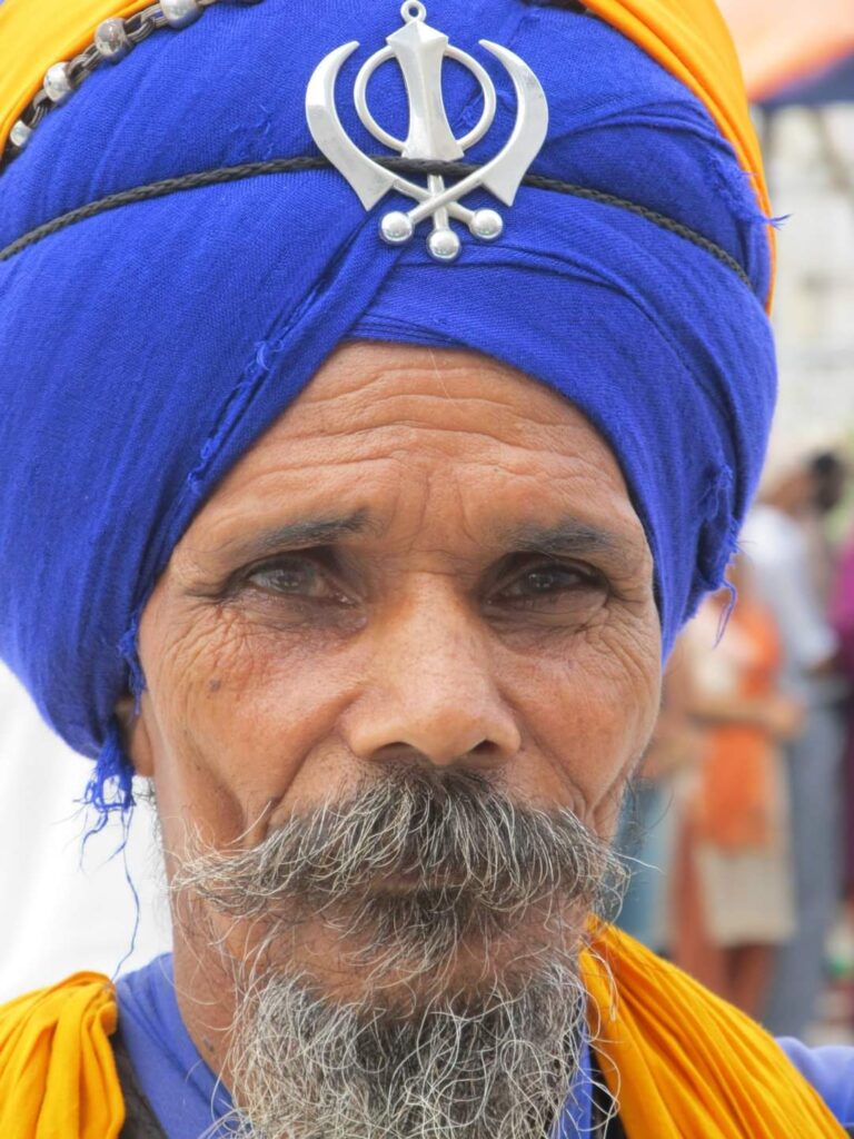 La religion de las 5 K: Kesha, Kara, Kirpan, Kachha y Kangha. Estamos en el Punjab y son los Sikhs.