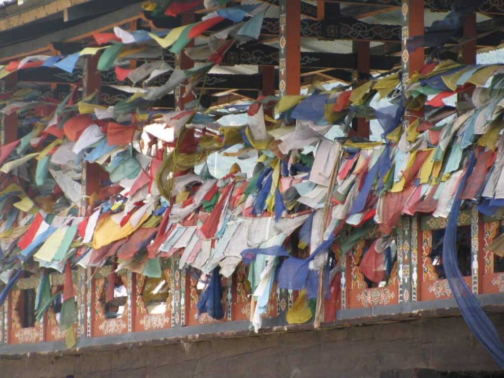 Hoy subiremos alto, muy alto, hasta el punto que en algunos lugares nos hará falta la ayuda de los animales para evitar el mal de altura. Nuestros ojos llegaran a divisar el Gangkhar Puensum, cima del reino de la paz y la alegría, situada a 7570 msnm, siendo la única cima indomable en el mundo, pues el humano aun no la ha podido subir, pues por un lado es sagrada para los budistas de Bután y por otro lado hay disputas políticas, al estar situada entre la frontera china y de Bután. Sortearemos valles, muchos caudalosos ríos por abanderados puentes hasta llegar al Dzong en que nos hospedaremos durante unos días. Los DZONG o JONGS, son las fortalezas/monasterios, construidos durante siglos, con fines religiosos, militares y administrativos, de altos muros y pintados de color blanco y siluetas granates.