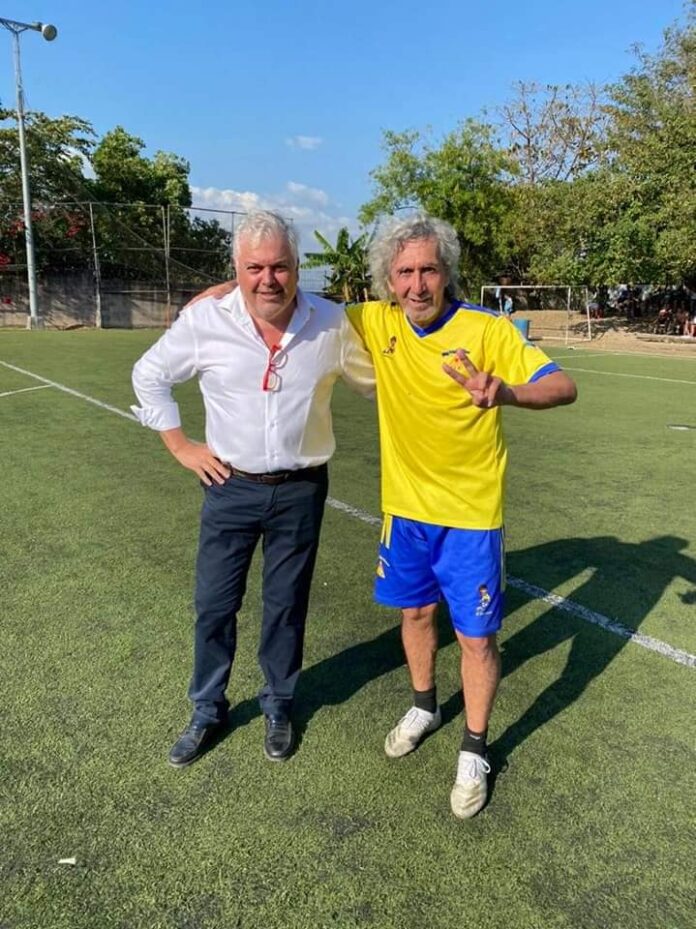 Lo conocí en el famoso Hotel Rocas Blancas, hoy abandonado, de Santa Pola, durante el Mundial de futbol de España en 1982 y poco tiempo después debutó en el Cadiz F.C el 11 de Septiembre de 1982. Aquel presidente del Cádiz, D Manuel Irigoyen, que marcó una época del Fútbol gaditano, por su austeridad e imaginación durante su período de 1978 al 1992 lo catapultó a los altares convirtiéndolo en ídolo de la afición gaditana, andaluza, española y centroamericana, pues supo CONSENTIRLO y MIMARLO. GENIO y FIGURA, como se dice en España, sus CULEBRITAS MACHATEADAS, en el campo de juego, le perdonaron todos los desmanes y pecadillos cometidos fuera de ellos. Un GENIO que nació para divertirse en los campos de fútbol y un jugador que se convirtió en MAGICO por habilidades en su juego y para su afición. Años después en la presidencia más carismática del Real Zaragoza con Jose Ángel Zalba, acompañe al Zaragoza al campo del Cádiz, al mítico CARANZA , donde durante la década de los 80 todos disfrutamos de su juego. En diciembre del 2001 me volví a encontrar con Jorge Alberto González Barilla, alias Mágico González, nacido un 13 de Marzo de 1958, en San Salvador, padre de 4 hijos y pude disfrutar en persona con el, de su carisma, de su genialidad. Mi amigo Fernando Villaro, tiene un yerno Salvadoreño y un nieto que adora al MAGICO y me pidió una dedicatoria, por ello tuve que ir a buscarlo. MAGICO tiene una fundación que apoya a los niños de los barrios marginales de San Salvador, además es tan popular en el pais, que tiene un estadio con su nombre. Me toco disfrutar también del arte que su hija, Victoria, tiene con la pelota, imitando a su padre con la culebritamacheada . Como se dice en mi tierra de tal palo, tal astilla. La verdad es que mi profesión, además de darme la posibilidad de recorrer el mundo entero, me provoca día a día tener experiencias MAGICAS, como las que disfrute con MAGICO.