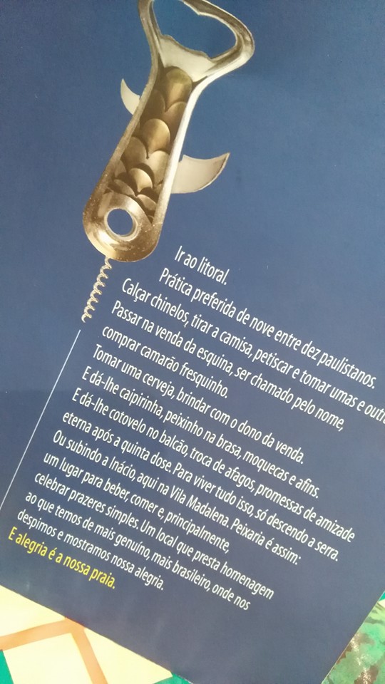 Vila, Vila Madalena, es sin duda uno de mis barrios favoritos, en Sao Paulo, la megapolis brasileña. Sus empinadas calles, sus grafitis, encabezados por los de mi amigo Kobra su arte urbano, sus tiendas de diseño y sus restaurantes. Entre ellos, varios de mis favoritos, como Almodovar, Consulado y quizas mi preferido, PEIXARIA Bar e Venda, en la Rua Inacio Pereira da Rocha, 110. Un lugar unico, decorado con objetos de las regiones costeras brasileñas, con un mostrador de venta de peces, donde mi amigo Bahía, en mi ultima visita, me eligio el pescado para nuestra cena, un increíble pez Vermelho, fresquisimo. Os recomiendo los Bolinhos, las ricas Caipirinhas y el ceviche de Robalo, siempre acompañado de unas ricas y frescas chopps, asi se llaman a las cervezas/cañas en Brasil. . Aqui empieza la noche paulista en Sampa, luego toca perderse por los bares de la zona, al ritmo de la mejor musica Bossa Nova.