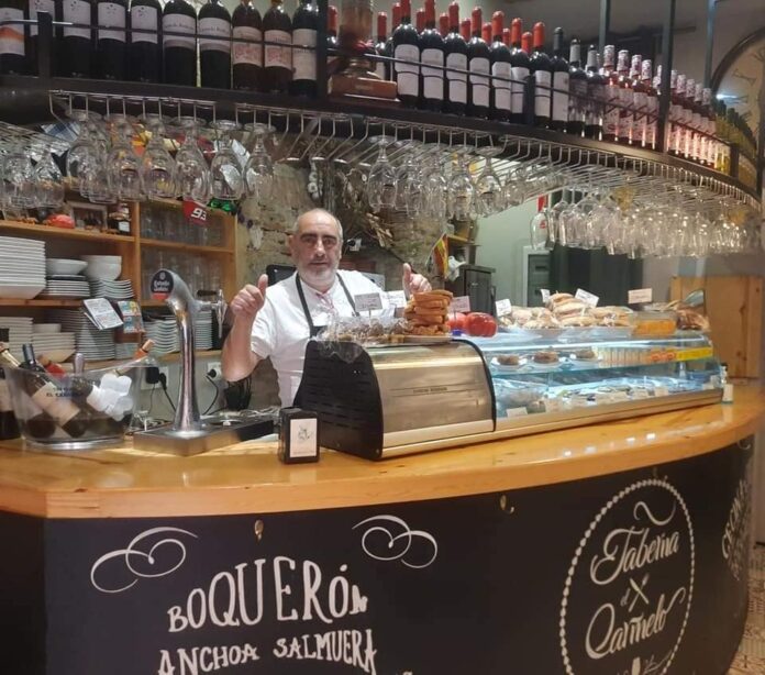 TAPEANDO…..en pleno centro de Zaragoza y en su casco antiguo, se encuentra el TUBO, unas calles que rebosan historia, gastronomia y ambiente. www.enjoyzaragoza.es Tapear en el Tubo de Zaragoza es una tradición y hacerlo en casa de mi amigo Carmelo Bolea Sancho es una obligación, la TABERNA de CARMELO. Alli, en su barra, Carmelo y Amaly rebosan cariño, sus torreznos, sus tapas elaboradas, sus embutidos, su amistad y su localizacion es visita obligada con amigos de aquí y de allí. Recordar esta Taberna, situada en la Calle Cinegio, 6, de la mano de Carmelo paso de ser una Cuchilleria a una Taberna de autor, donde todos los clientes de NTC COMPANY www.ntc1958.com llegados del extranjero, disfrutan de su tapa galardonada ELCARAMELO, que es un trozito de una pierna de ternasco asado sobre un pan de semilla de higo y una patata a lo pobre.