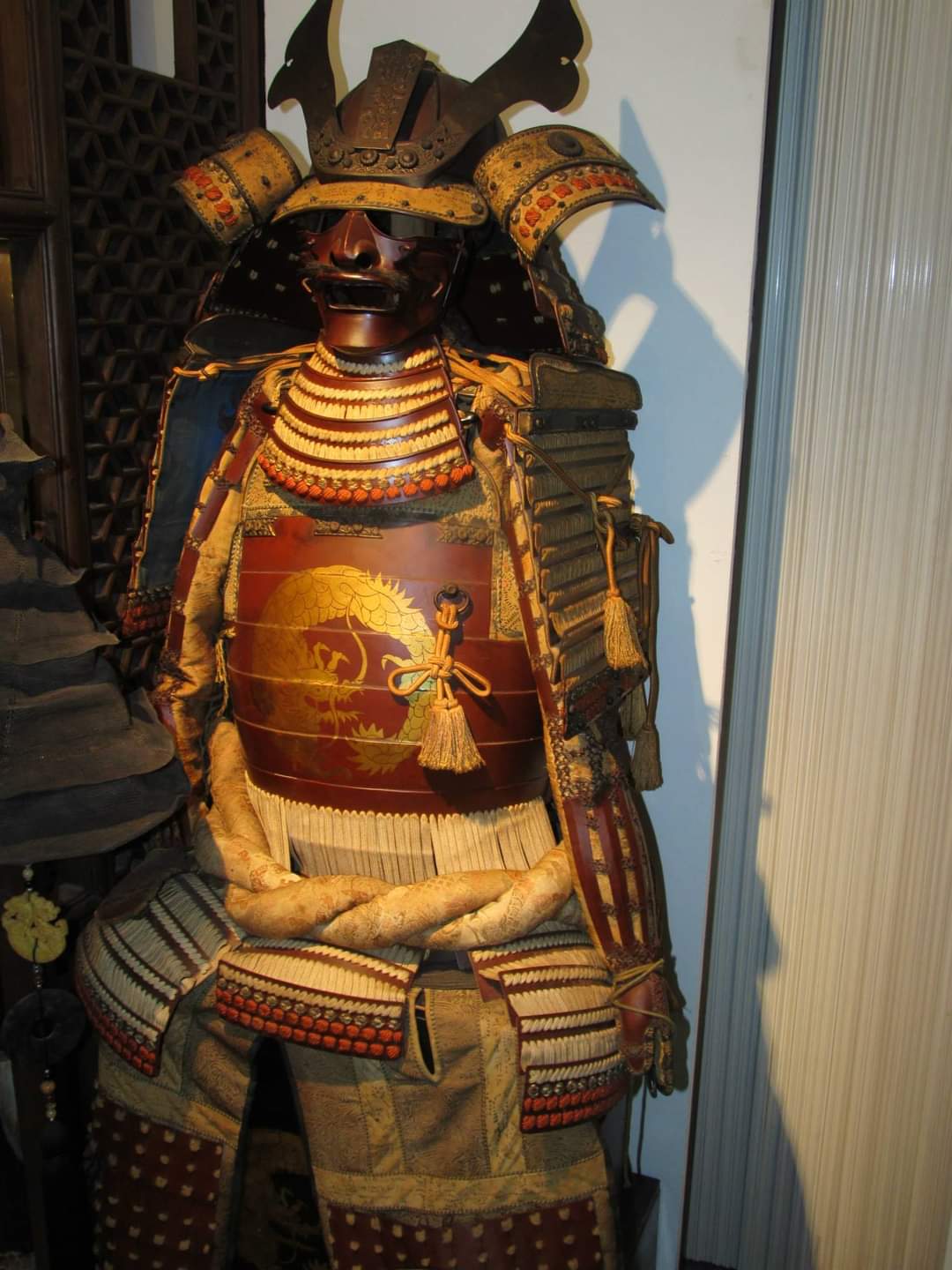 Después de años de búsqueda, en decenas de mercados de antigüedades repartidos por el mundo, buscando indumentarias de etnias, civilizaciones, tribus …… para nuestra colección, al final pudimos encontrar un autentico “Yoroi“ completo del siglo XVII, para nuestra colección de Espacio NTC , en el mercado nocturno de Srinagarindra en Bkk, Bangkok. El “Yoroi“ es una armadura de samurai, de alta sofistificacion por los elementos y materiales empleados, realizada de placas de acero o cuero y con formas colgantes en el pecho y de la misma forma en la parte delantera y trasera del cuerpo y piernas. Esta que hemos comprado, tras horas de discusión y de difícil negociación, pesa 22 kilos y fue de un general de alto rango, por su rigidez y dispone de todas sus partes, en perfecto estado, como el casco, llamado, Kabuto; la máscara, conocida como Mempo y todas las protecciones del cuerpo, cubiertas con rígidas laminas de metal y madera. Es una autentica pieza de museo , que en pocos días tendremos expuesta en NTC Company.