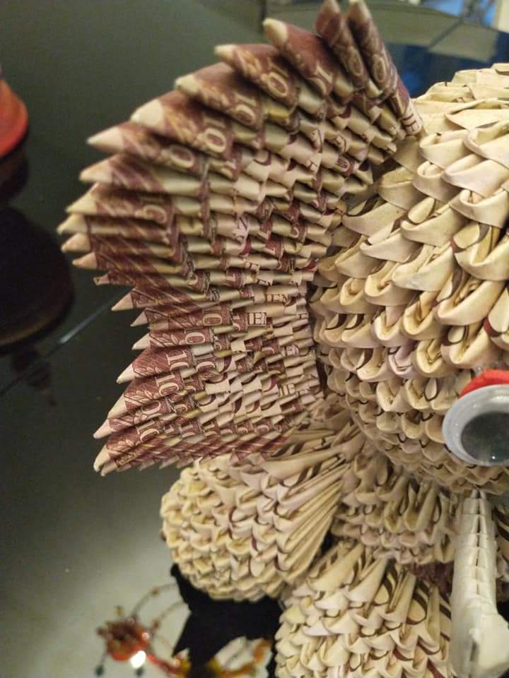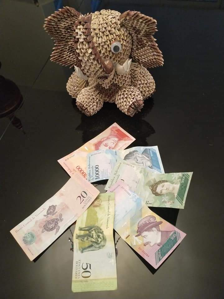 El precioso elefante que le compré al Sr Luis, esta hecho con más de 3000 billetes de curso legal y se lo he querido pagar a 15 euros.