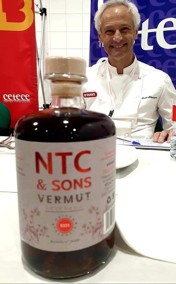 La amistad fue a más, y las posibilidades de colaboración también, hasta el punto que ya con la nueva empresa de destilados que cree, con mucho mas potencial, NTC and SONS, volví a confiar en Camila, para mis nuevas Ginebras y en Javi para la creación de un nuevo VERMUT Artesano. Dicho y Hecho, sacamos un Vermut Artesano, en el que el aposto por el diseño rompedor de aromas con las frutas tropicales que ha sido todo un éxito, desde el mismo momento que empezamos a producirlo y ya van muchas miles de botellas vendidas. Su amor por Palencia, quedo reflejado en la etiqueta de la botella, al hacerlo en su tierra y pertenecer a Alimentos de Palencia.