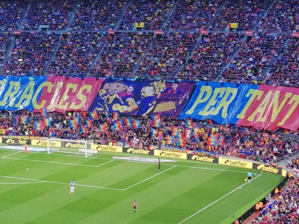 El dia 20, los 18 peruanos y yo, disfrutamos de la magia de su despedida, con el campo lleno y con el campo hecho un mosaico de colores Blau y Grana y con todas las voces al unísono coreando su nombre.