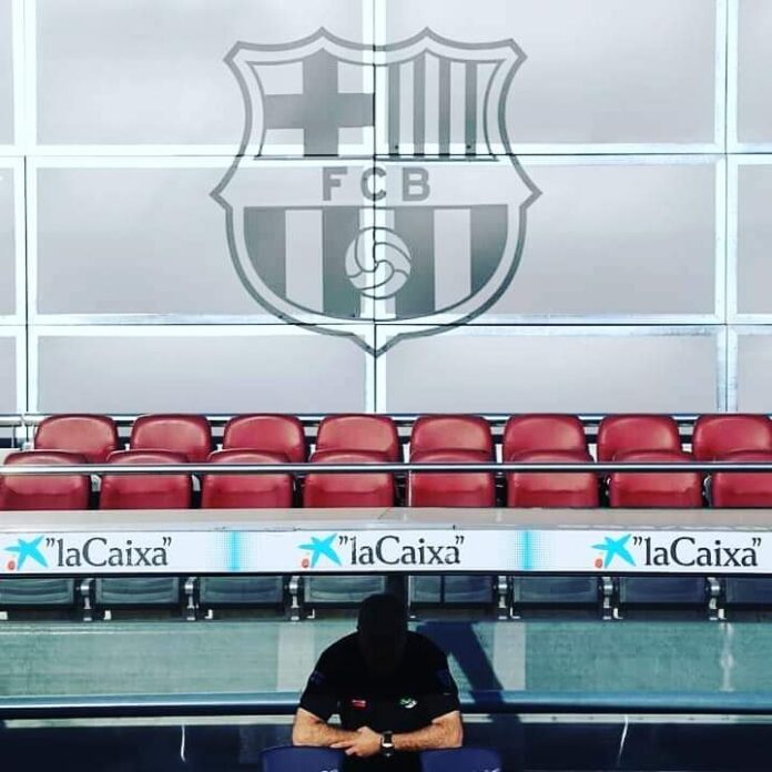 El dia anterior, 19 de Mayo, tuve una vista privilegiada, al Camp Nou, y bajando al césped, en el que Andrés Iniesta tantas horas de gloria había dado al club.