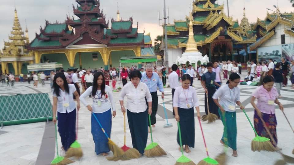 Sumando ….Cada vez que vuelo a Yangon, me hace falta perderme, en la pagoda de Shwedagon, para mi una de las maravillas del mundo, donde cada vez encuentro una visión nueva. En el mes de Octubre del 2019, la recuerdo con especial cariño, pues era el atardecer, había una preciosa caída del sol, apenas hacia calor y me junte con el batallón de limpieza, de mas de 60 señoras, para ayudarlas, que una vez al día, barren el suelo de mármol del complejo, dando vueltas en el sentido contrario a la agujas del reloj. Y luego me fascina, relajarme con uno de los cientos de monjes que hay en el complejo, contemplando el ocaso y hablando de nuestras cosas, de lo humano y de lo divino con el idioma universal de la mímica. Mejor siempre sumar que restar. En el complejo religioso de Shwedagon, que tiene mas de 2500 años de historia y ocupa una extemsion de casi 50 hectareas, destaca su estupa principal, llamadas Payas, que tiene más de 100 metros de altura, cubierta con un baño de oro y en su interior se encuentran reliquias de Budha. A la Paya principal, la rodean 64 pequeñas pagodas, todas ellas pintadas en oro en su exterior y con vivos colores en su interior. Para entrar a la Paya, existen 4 entradas con pronunciadas escaleras y una vez en ella, existen diferentes terrazas a las que sólo tienen acceso los monjes. En su parte superior se encuentra la corona, que está cubierta con más de 5000 diamantes y más de 2300 rubíes.Os recomiendo visitar este espacio, que es el monumento más importante, venerado y con mayor simbolismo de todo Myanmar. Y para acabar recomendaros visitar el cercano Lago Kandawgyi y el Karaweik Hall. Myanmar, es uno de los destinos mas importantes donde NTC COMPANY, www.ntc1958.com opera . Os lo recomiendo !!!