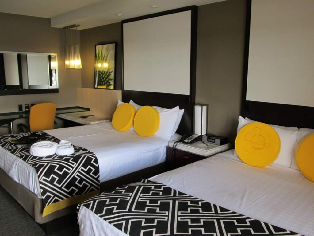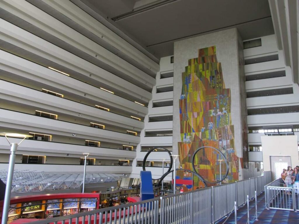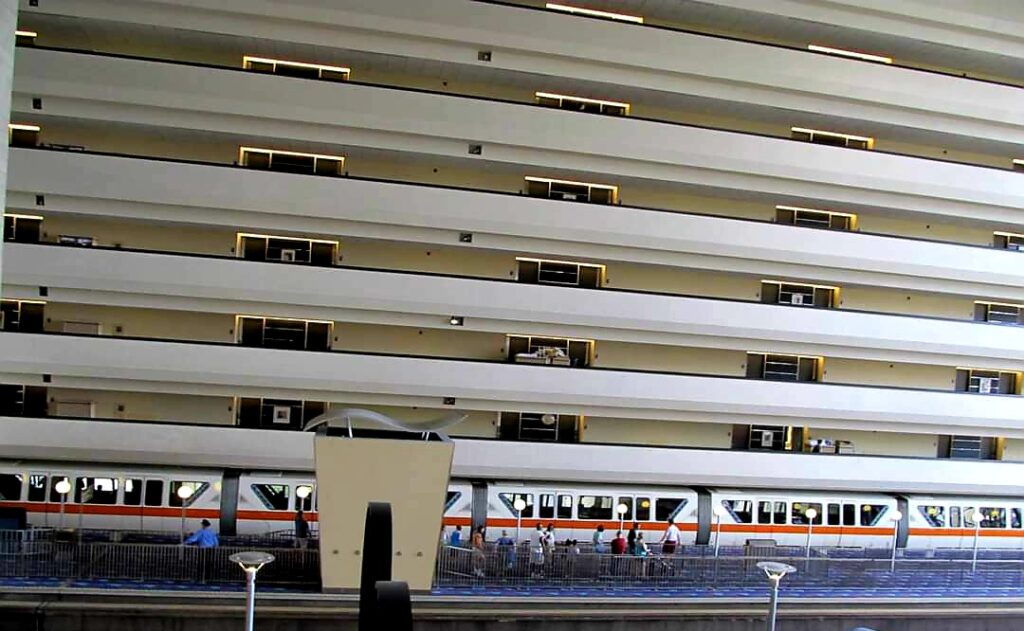 El fantástico DISNEY’S COMTEMPORARY Resort, www.disneyworld.disney.go.com tiene 655 habitaciones y es uno de los tres que se encuentra dentro de la zona del lago de Buena Vista, junto al Grand Florian y al Polynesian. Estos tres resorts están conectados por el monorraíl que les une a la entrada principal del Magic Kingdom y a la TTC (la entrada principal del parque con su parking y las taquillas principales).